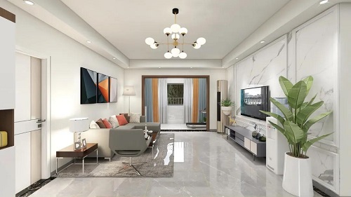 客廳舒適敞亮,一鏡到底的明亮感,搭配灰白色調(diào)的家具,加上銀色線條的裝飾,色澤鮮明,給客廳增添一絲靚麗的色彩。